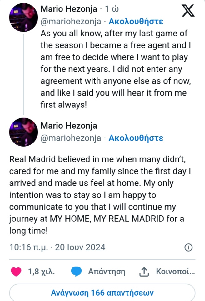 Τέλος στο σίριαλ: παραμένει στη Ρεάλ Μαδρίτης ο Μάριο Χεζόνια!