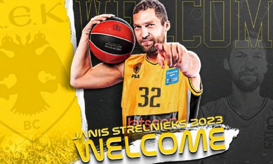 «Η ΑΕΚ ΒC ανακοινώνει, ότι συνήψε σήμερα (10/08) συμφωνία με τον Γιάνις Στρέλνιεκς (Janis Strelnieks).