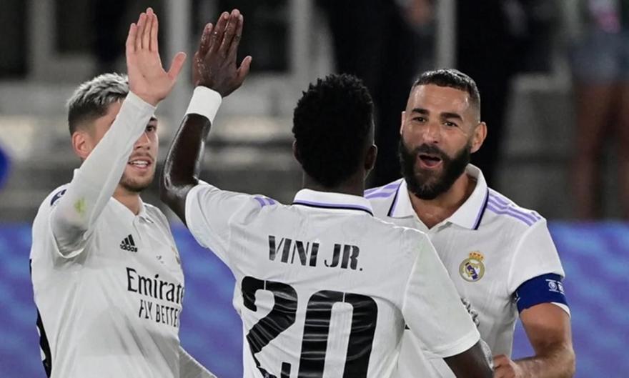 Η ενδεκάδα της Ρεάλ Μαδρίτης (Κάρλο Ανσελότι): Κουρτουά, Καρβαχάλ, Μιλιτάο, Αλάμπα, Μεντί, Κρόος, Κασεμίρο, Μόντριτς, Βαλβέρδε, Βινίσιους, Μπενζεμά