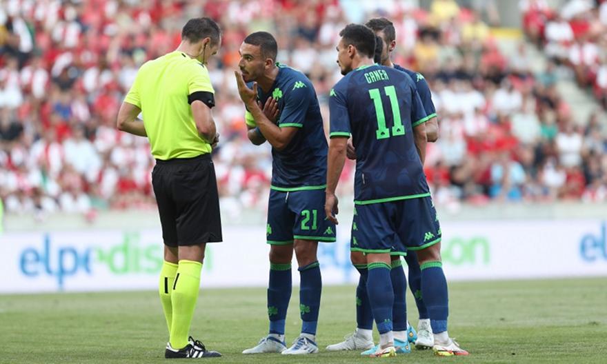 Βέβαια, στο «τριφύλλι» έχουν έντονα παράπονα από τη διαιτησία του Ρουντί Μπουκέ. Ο Γάλλος Ρέφερι απέβαλε τον Σεμπάστιαν Παλάσιος με δεύτερη κίτρινη κάρτα για θέατρο στο 41ο λεπτό. Η συγκεκριμένη απόφαση κρίνεται, στην καλύτερη, ως αυστηρή. Με 10 ποδοσφαιριστές ολοκλήρωσε την αναμέτρηση και η Σλάβια, λόγω αποβολής του Σάντος.