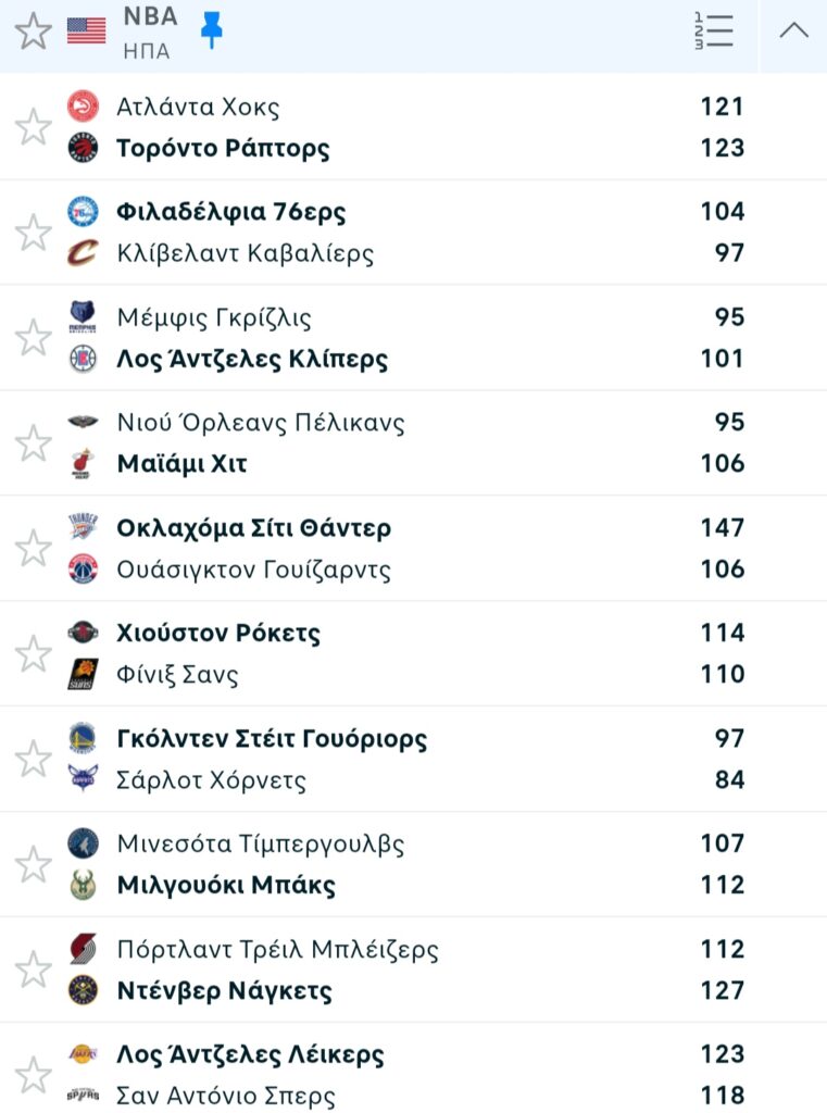 Όλα τα αποτελέσματα της βραδιάς στο NBA: