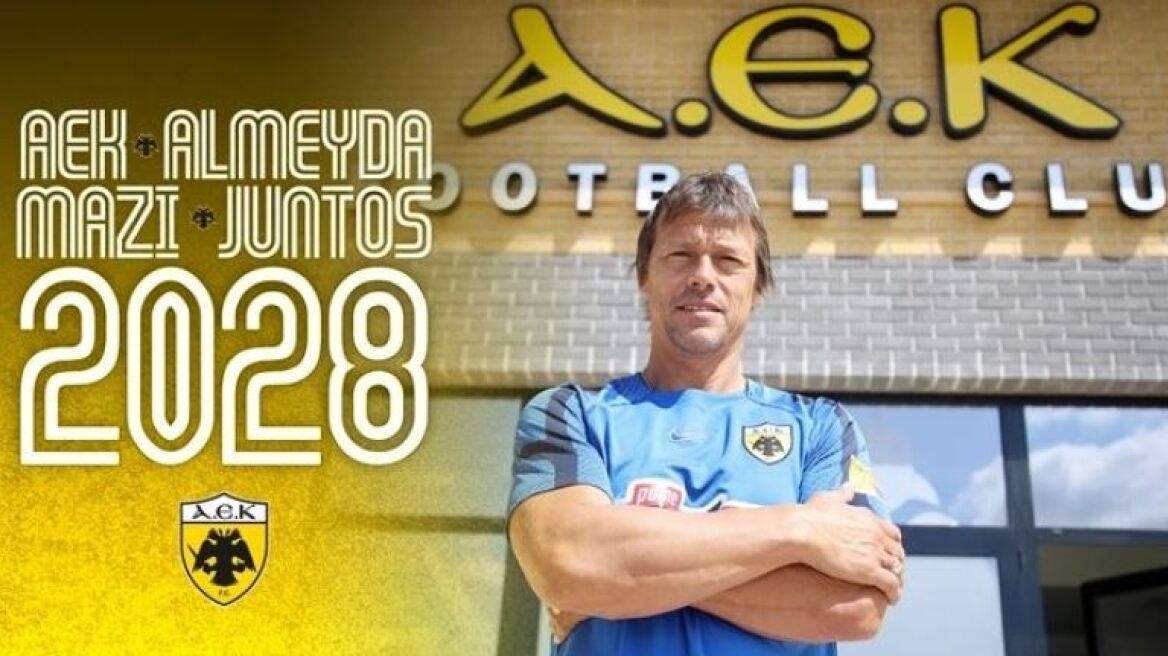 «Η ΠΑΕ ΑΕΚ με τιμή, χαρά και υπερηφάνεια, ανακοινώνει τη συμφωνία με τον προπονητή μας Ματίας Χεσούς Αλμέιδα για την επέκταση του συμβολαίου του μέχρι το καλοκαίρι του 2028!