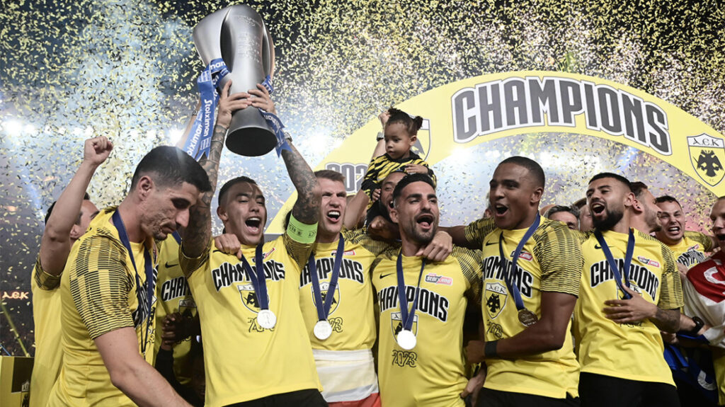 Μια ανεπανάληπτη σεζόν για την ΑΕΚ! Η Ένωση έφτασε στο τρίτο νταμπλ της ιστορίας της και πρώτο μετά το μακρινό 1978. Υπό τις οδηγίες του Ματίας Αλμέιδα, οι κιτρινόμαυροι έπαιξαν εκπληκτικό ποδόσφαιρο και επέστρεψαν στην κορυφή. Με διαφορά, η κορυφαία ελληνική ομάδα του 2023!
