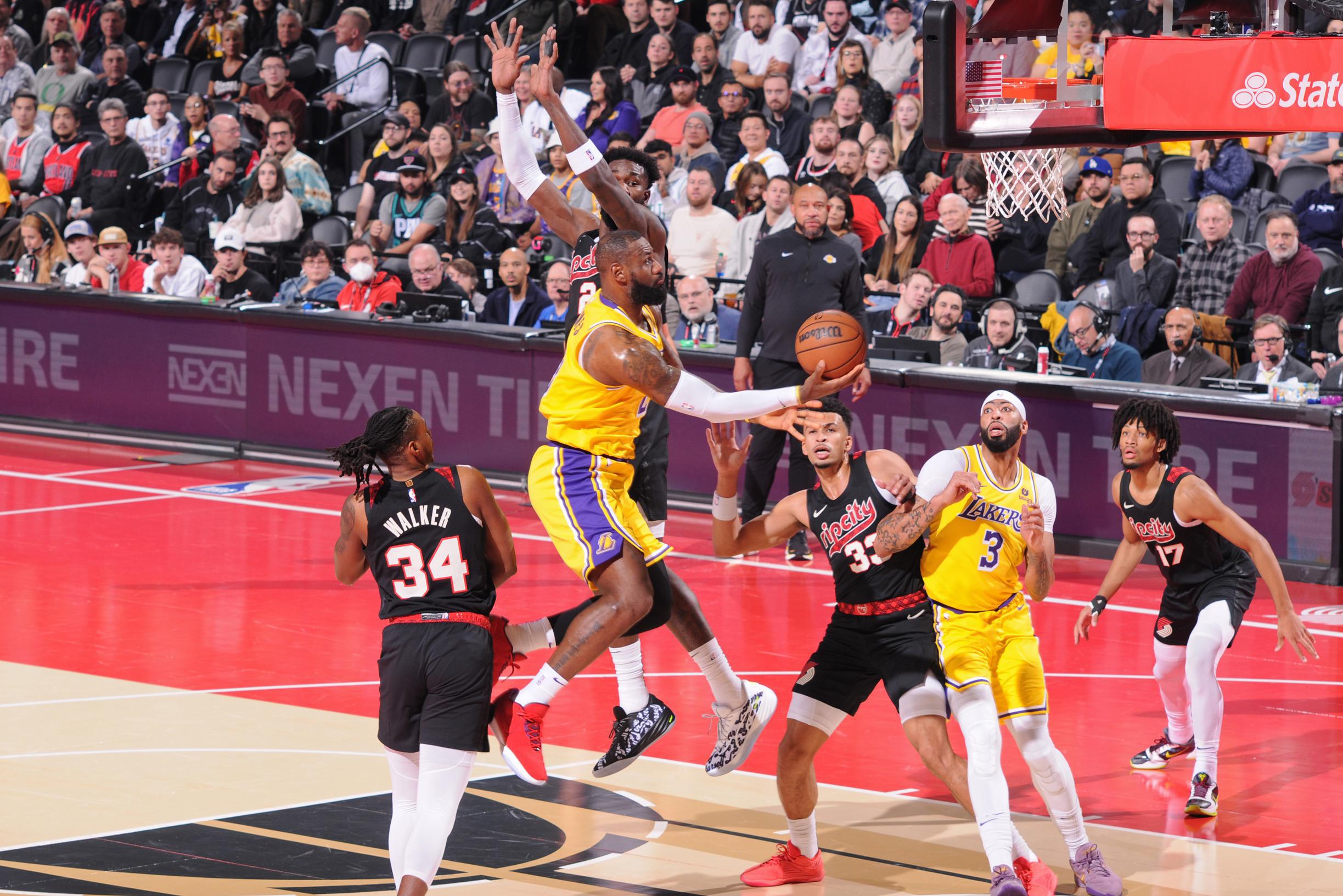 Παραμένει ασταμάτητος ακόμα και στα 39 του χρόνια ο Λεμπρόν Τζέιμς! Ο «βασιλιάς» πέτυχε 35 πόντους (5/9 τρίπ.), μοίρασε 9 ασίστ και μάζεψε 5 ριμπάουντ, βοηθώντας τους Λέικερς (7-6) να φτάσουν στη νίκη 107-95 επί των Μπλέιζερς (3-9) στο Πόρτλαντ. Στον αντίποδα, 24 πόντους είχε για τους ηττημένους ο Τζέραμι Γκραντ, με τον Έιτον να σημειώνει double double με 17 πόντους και 12 ριμπάουντ.